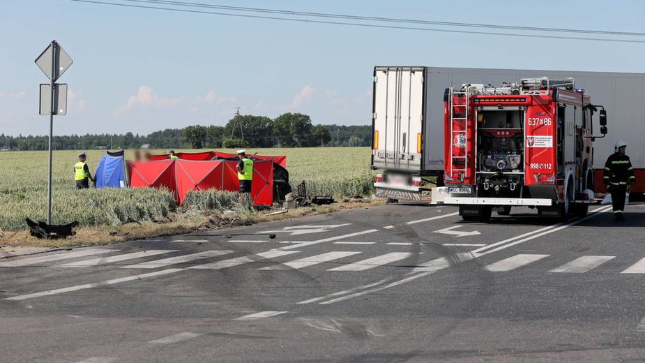 W zderzeniu auta osobowego z ciężarówką na miejscu